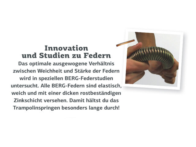 Speziell für dich entwickelt und auch stark genug für deine Eltern! Die Feder BERG Goldspring Solo ist elastisch und sorgt dafür, dass du den ganzen Tag schön leicht springen kannst! Für die Langlebigkeit dieser Feder sorgt eine gelb-goldene Galvanisierung (Zinkschicht) von innen und aussen.